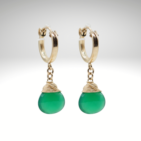 Green Onyx Birthstone/Zodiac Huggie Earrings