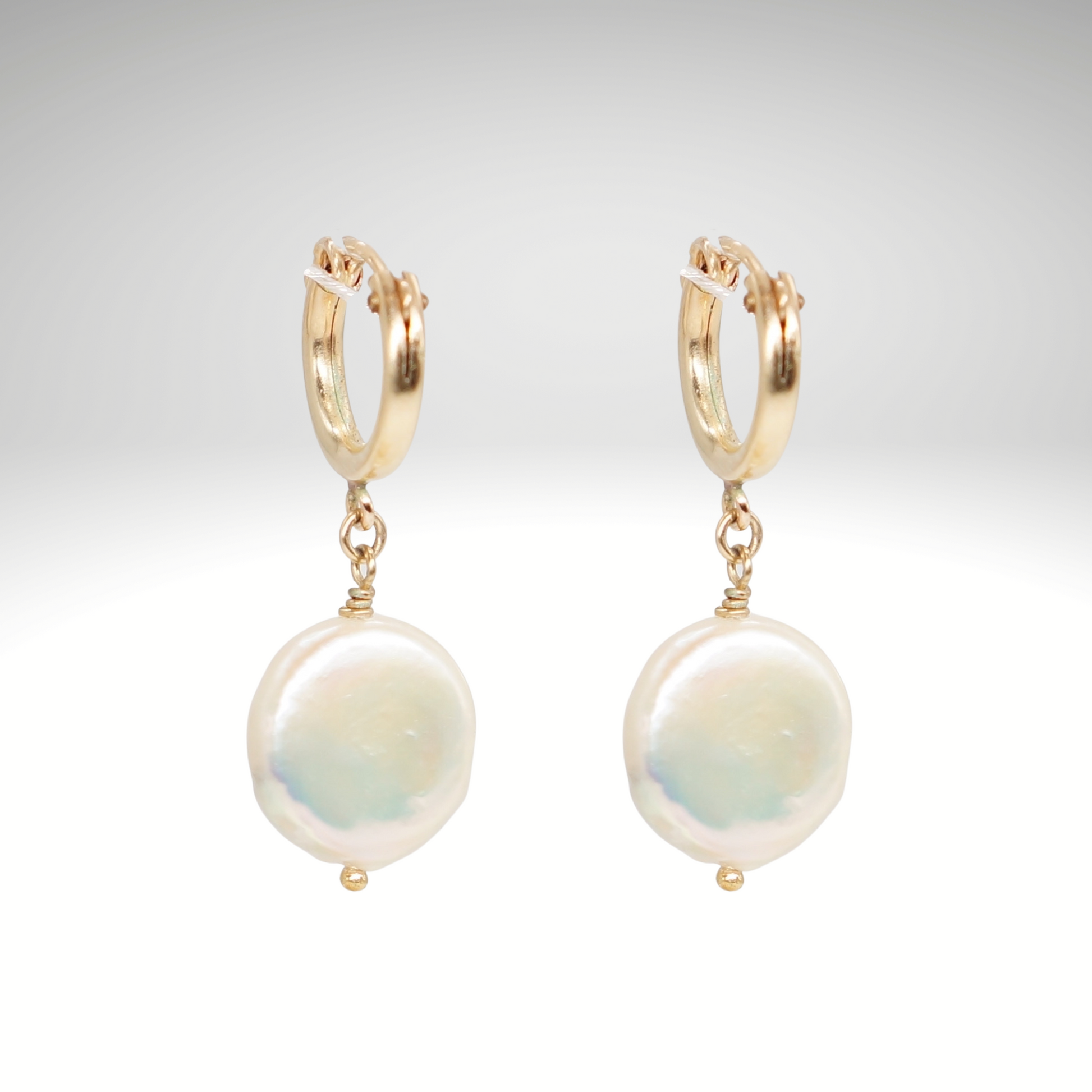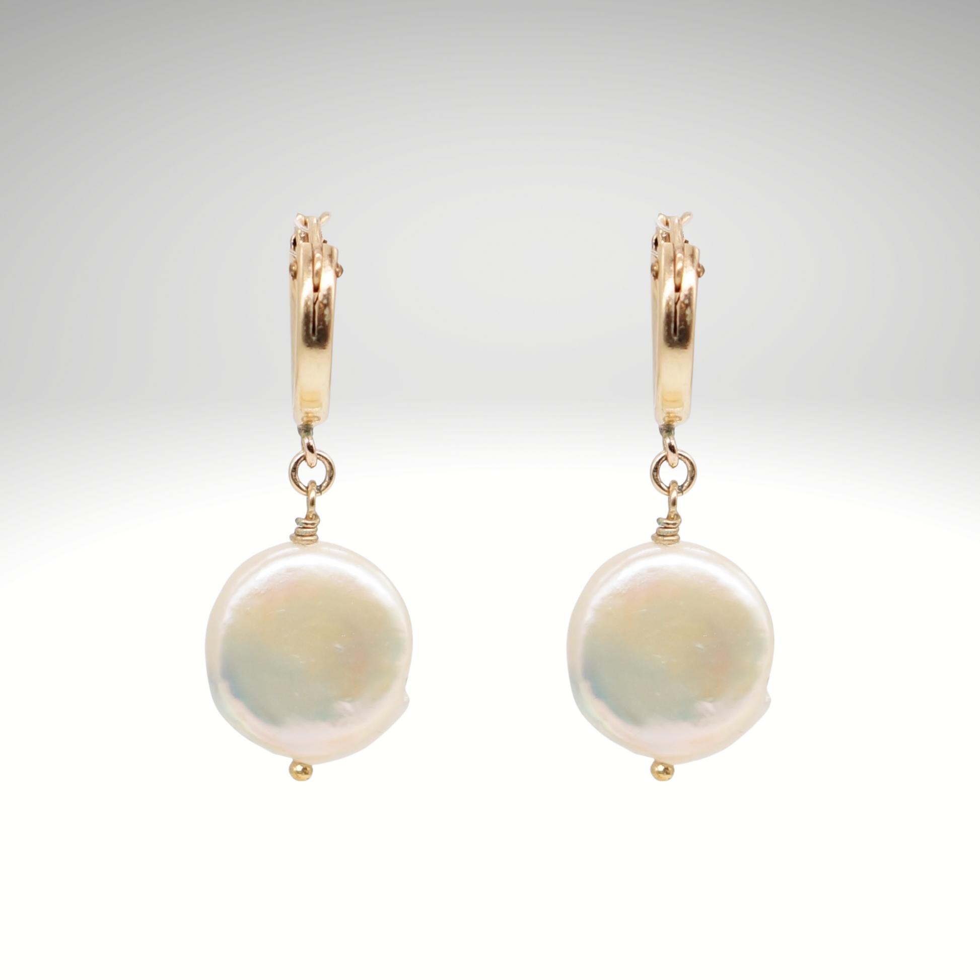 Drop coin pearl earrings that luster.