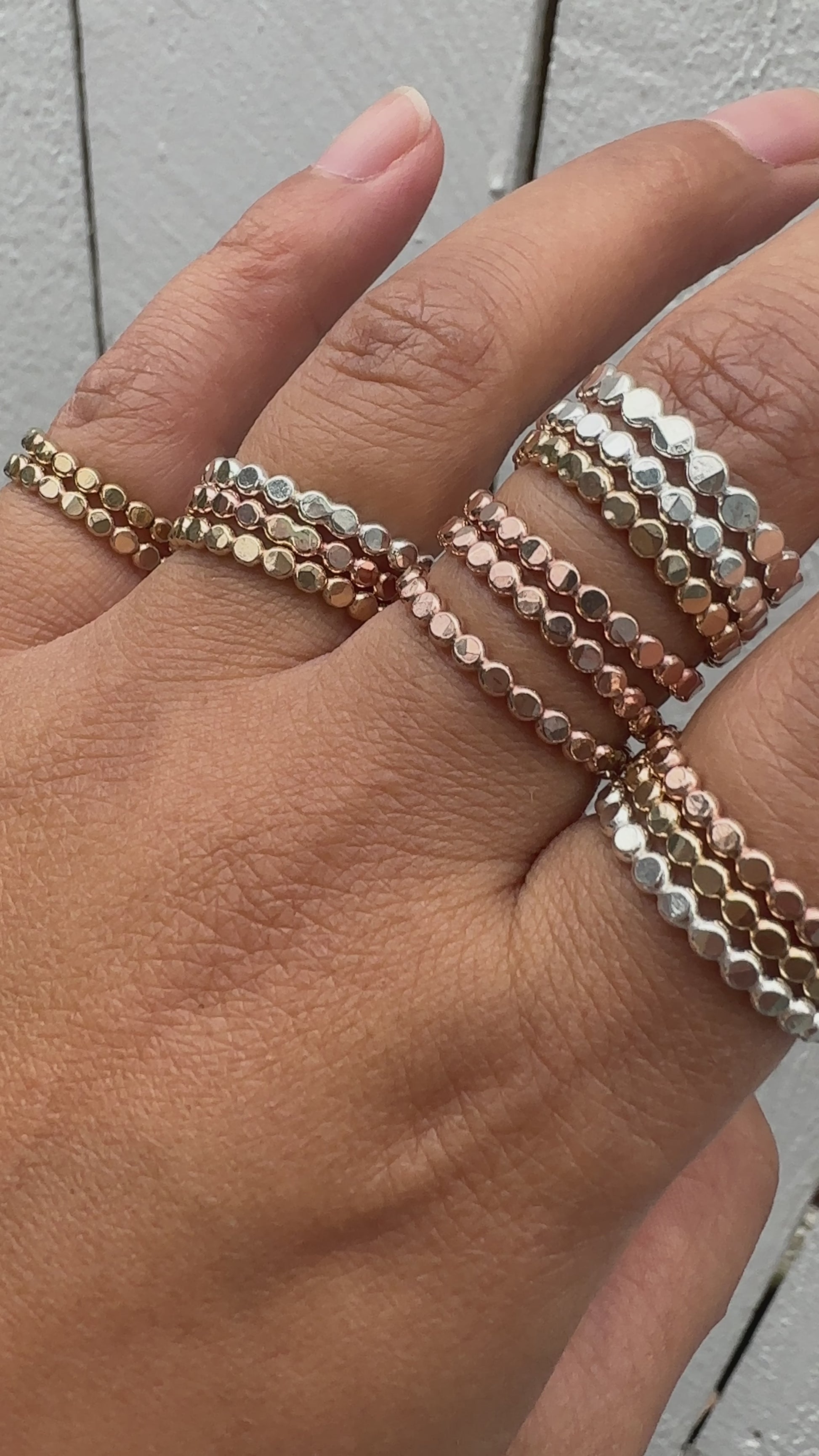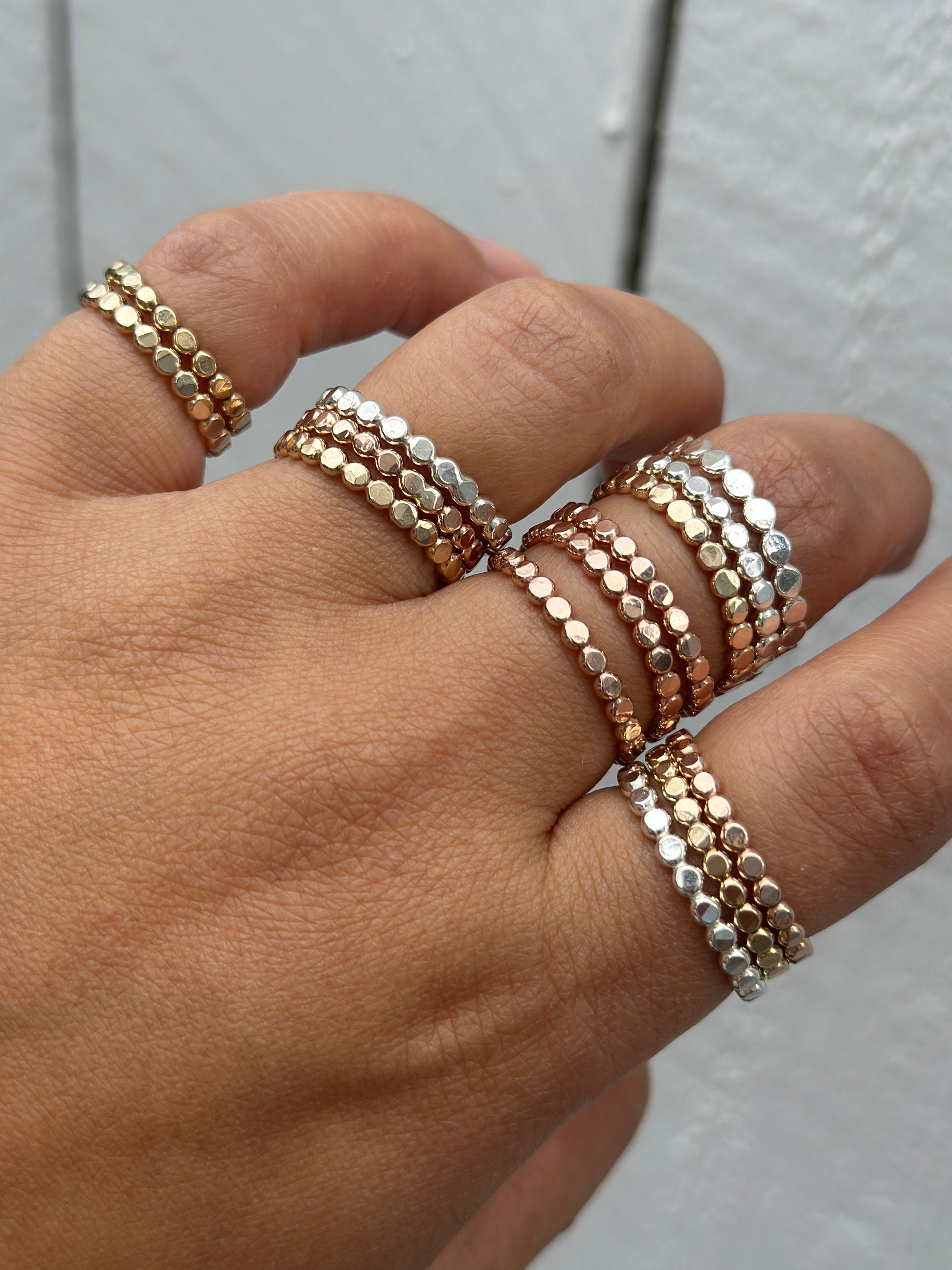The Revolve Ring is a hammered ball ring made of gold-filled or sterling silver. These rings are stackable, durable, and affordable. They are perfect for stacking with other rings. Whether you're looking for your first gold-filled ring or an addition to your stackable ring collection, you'll be sure to love it.