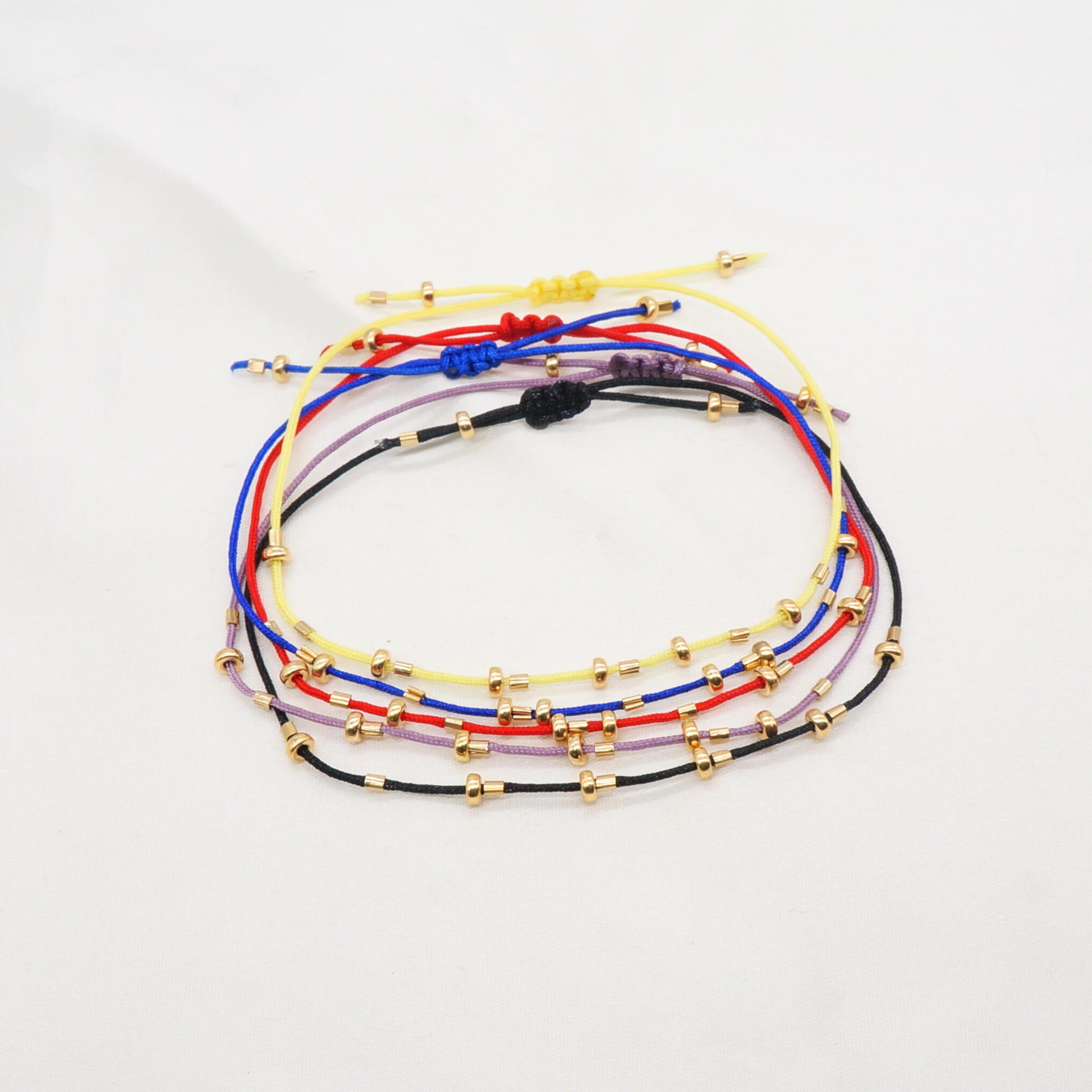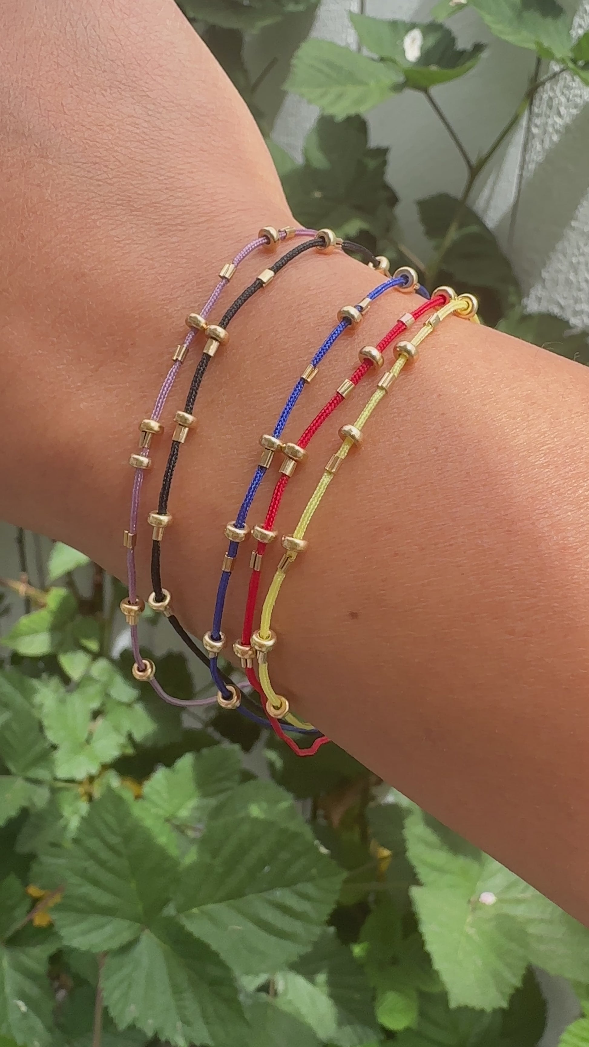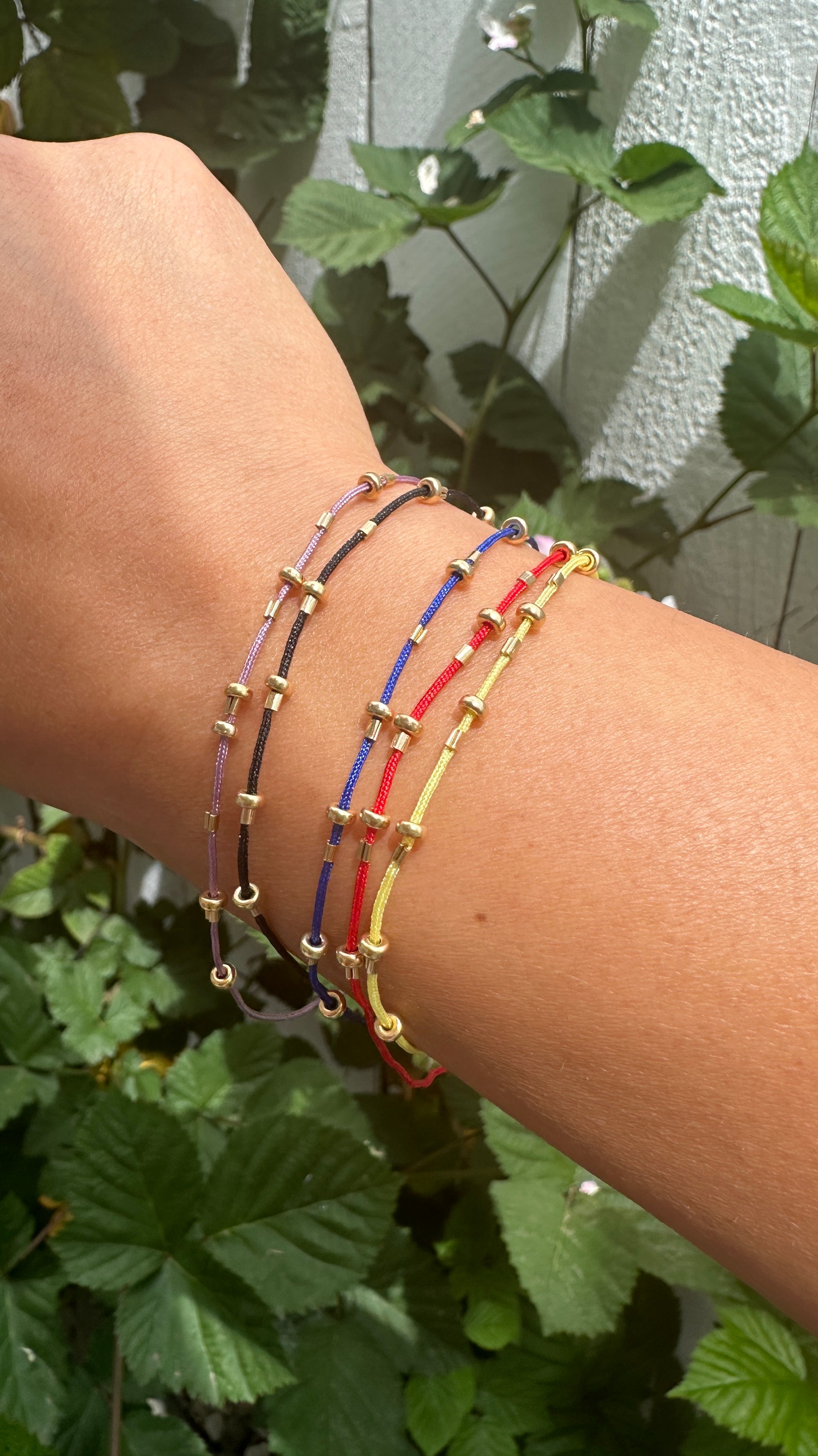 A delicate and colorful bracelet with floating gold-filled beads. Add a touch of color to your daily bracelet stack.